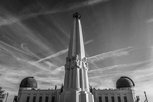 Griffith Observatory and Monument. Mount Hollywood in Griffith Park. Built in 1935. Architects John C. Austin, Frederick M. Ashley. The figures on the Monument represent; Hipparchus(125 B.C.), Copernicus (1500), Galileo (1600), Kepler (1600), Isaac Newton (1700), Herschel (1800). Albert Einstein was consdered, but they decided not to put anyone still alive on the monument.