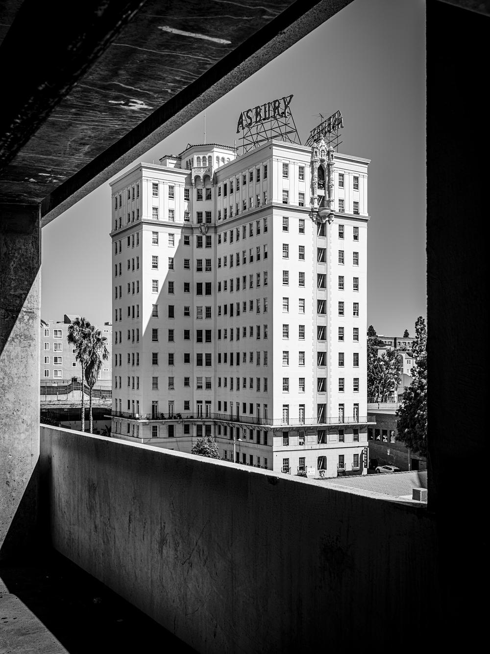 MacArthur Park, L.A. Built in 1925. Architects: Norman W. Aplaugh & Clarence H. Russel. Originally built as luxury apartments called "San Jacinto Dwellings". I'd driven to the area to take photos of another building in the area. Once I parked in this structure and saw the Asbury, I had to photograph it!