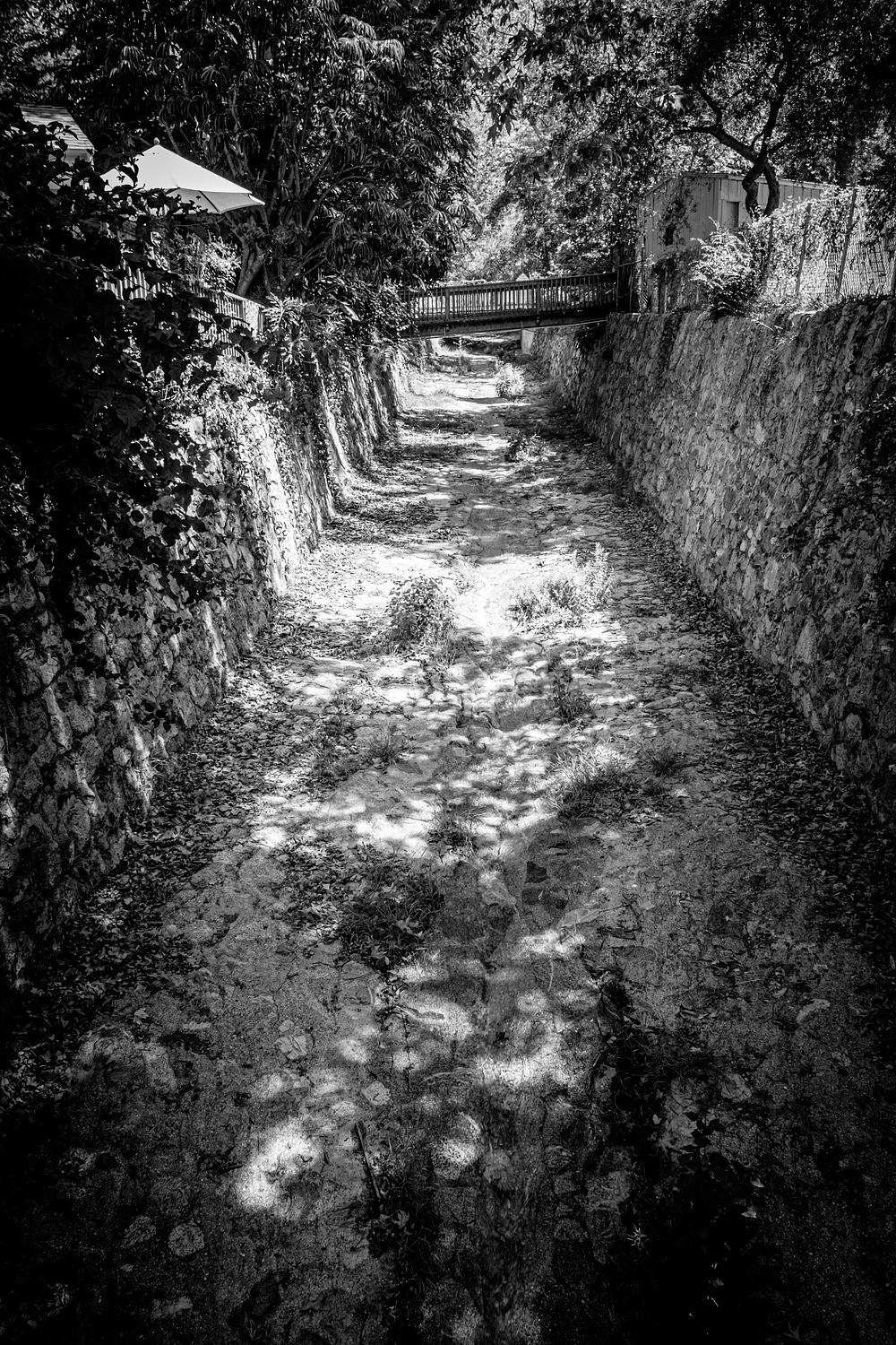Sierra Madre hills, L.A. A full drainage system was built in the Sierra Madre mountains on the north part of Los Angeles. This drainage system that runs throughout the hills, flows the water to the L.A. aqueduct system and out to the ocean. Otherwise there would be massive flooding in L.A. when it rains....the 36 days of the year (and often fewere).