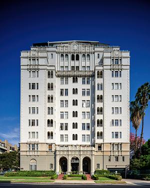 Hollywood, L.A. Opened in 1929, by architect William Douglass Lee (who also designed the infamous Chateau Marmont). This has been an apartment building since it's creation, housing many famous actors over the years; Nicholas Cage, Clark Gable, Lorreta Young, Jack Black, Josh Brolin, Ben Stiller, Ellen Page, etc. Several scenes for the film "Double Indemnity"(1944) were filmed here.