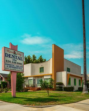 Pasadena, L.A. On historic Route 66 (Colorado Blvd). Originally a bungalow style hom built in 1938, it was completely remodelled in 1948 to this more Moderne style. It was Simeon Draper’s Women’s Clothing retail store for many years (Pasadena website).