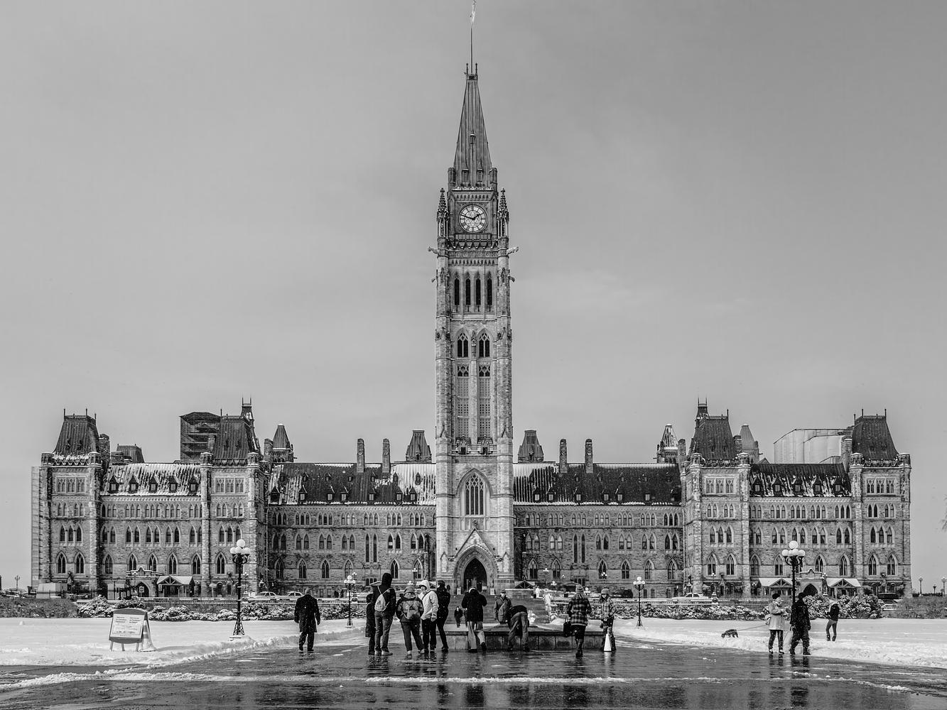 Ottawa, Ontario; Canada (my home town). Construction originally began in 1859 and completed in 1876. (Canada became it's own country in 1867). In 1916 a fire destroyed most of the building. The only surving part was the Library at the rear of the building which, oddly enough, had a completely wooden interior. The Parliament was completely rebuilt and opened again in 1927. It is Gothic Revival style. (I used to draw this building as a kid).